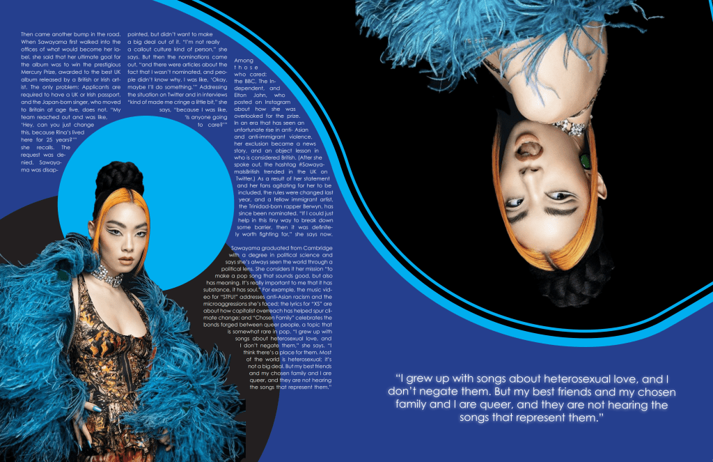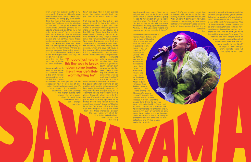 Rina Sawayama interview adapted into editorial spreads for a pop culture magazine
